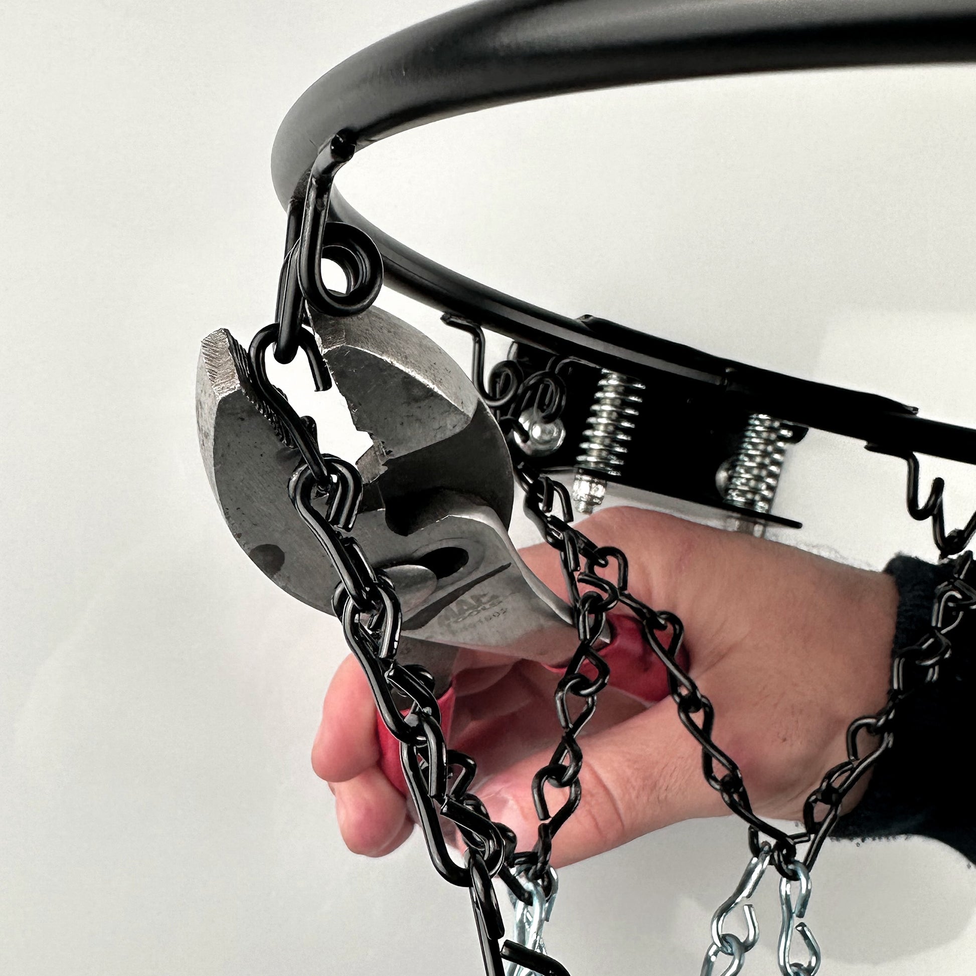 Attach ends of chain net to hooks, using pliers to securely tighten the S-hooks to the rim.