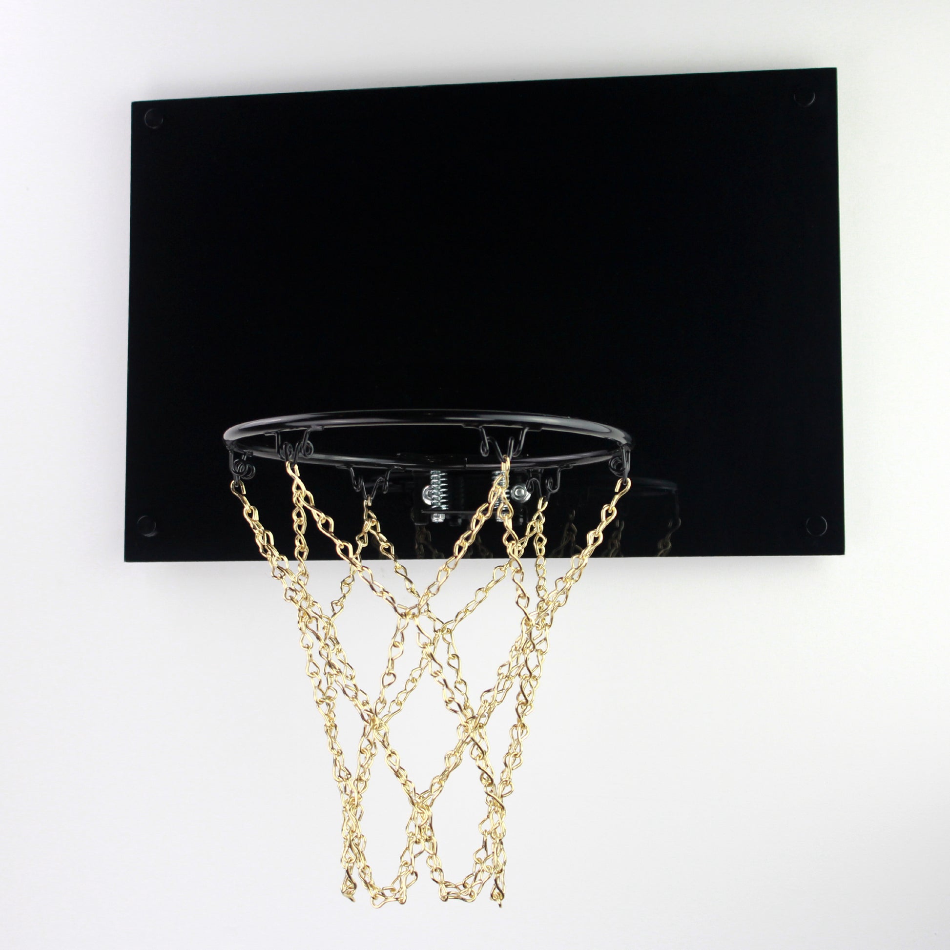 Transform any room into a mini basketball court with this sleek and modern indoor basketball hoop set. The black rim and black backboard combination offers a minimalist aesthetic that compliments contemporary decor. Set includes: